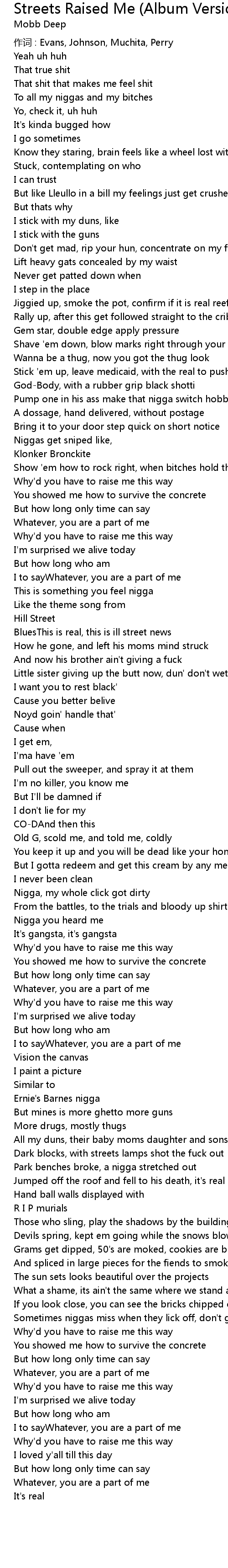 | Song | Streets Raised Me (Album Version) |