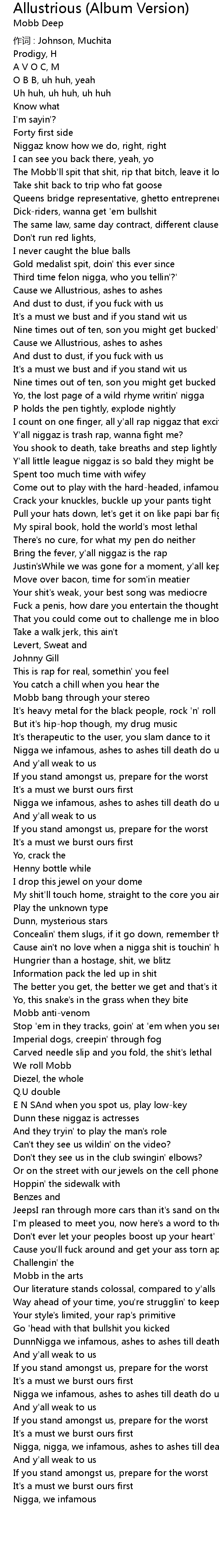 | Nigga, nigga, we infamous, ashes to ashes till death do us | |