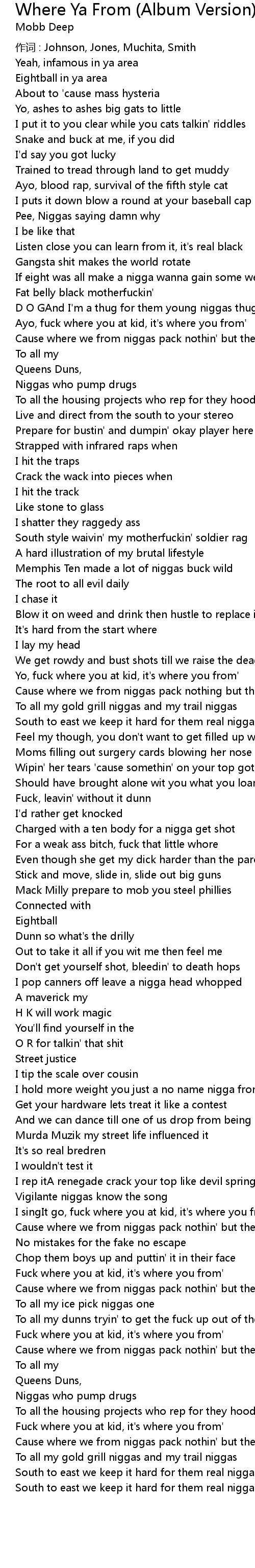 | I singIt go, fuck where you at kid, it's where you from' | |