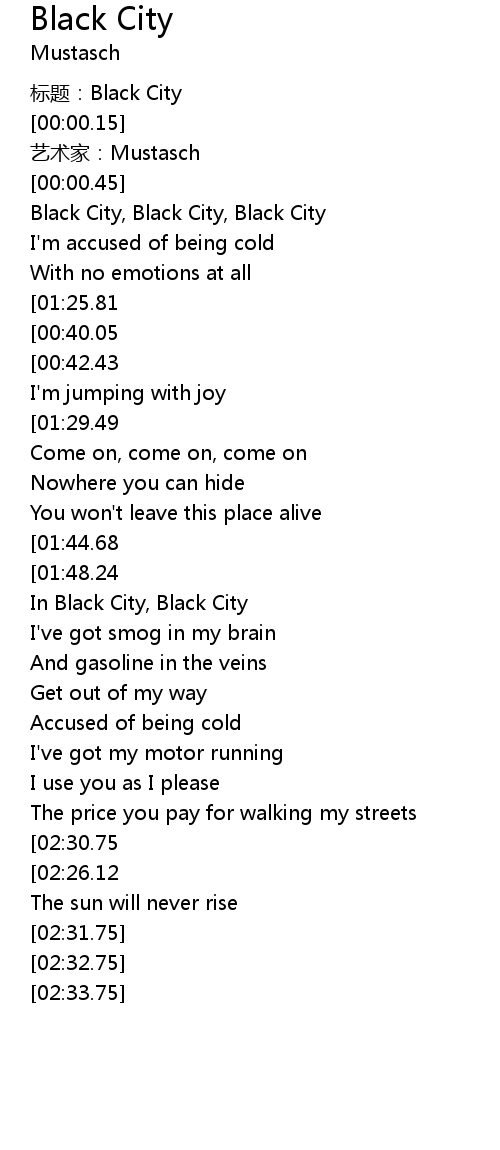 | [00:00.74] | Black City, Black City, Black City |