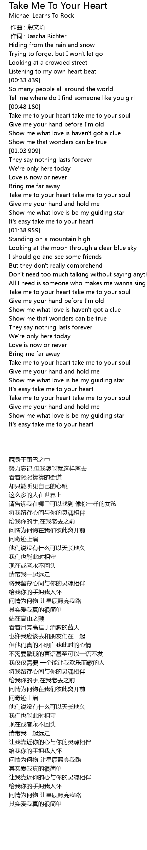 | [00:48.430] | Take me to your heart take me to your soul |