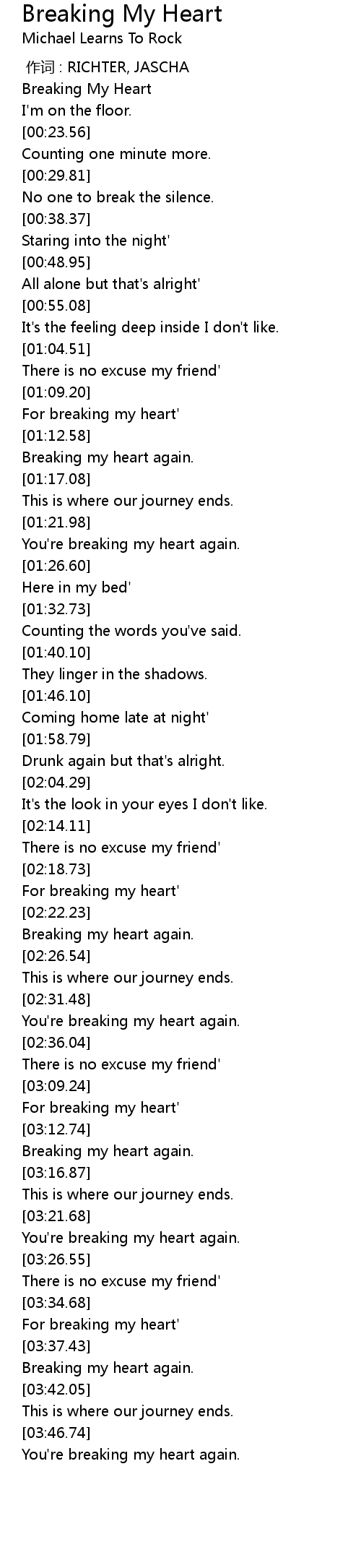 | [03:36.24] | For breaking my heart' |