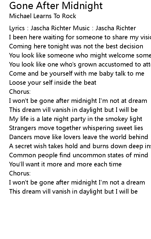 | I won' t be gone after midnight I' m not at dream | |