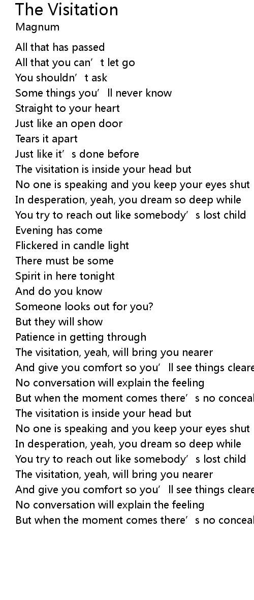 | The visitation, yeah, will bring you nearer | |