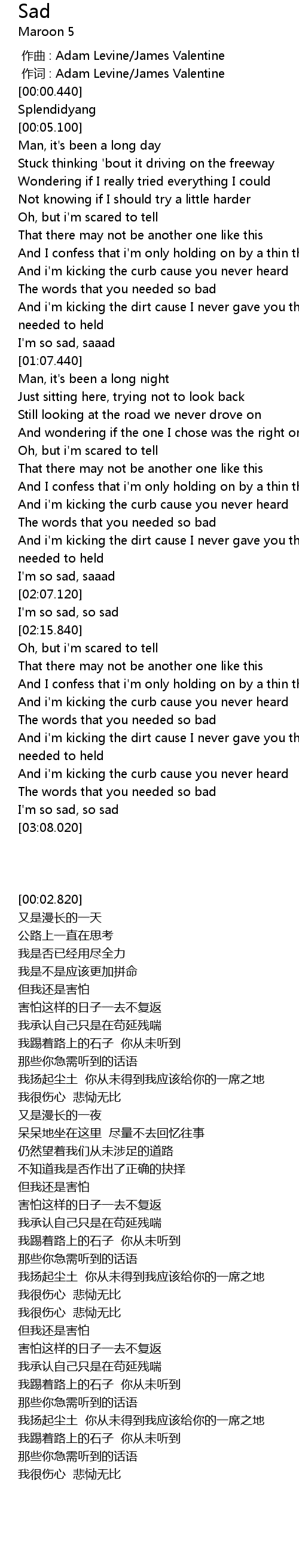 | [00:00.146] | zuò cí : Adam Levine James Valentine |