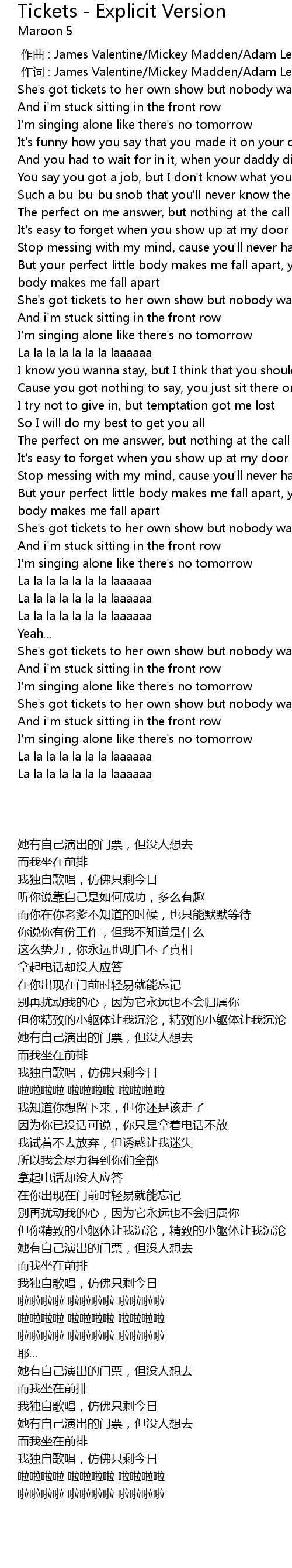 | Song | Tickets - Explicit Version |