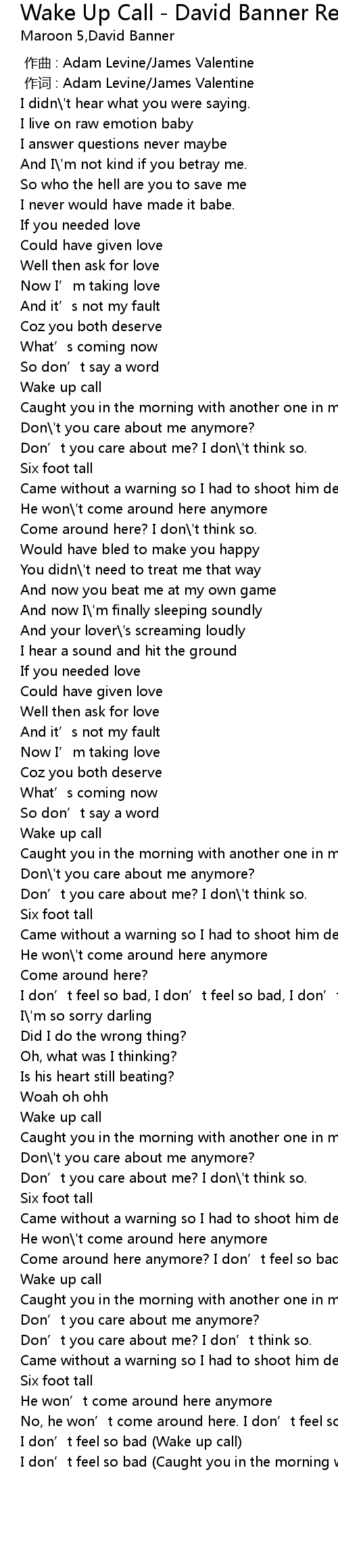 | [00:00.00] | 作曲 : Adam Levine/James Valentine |