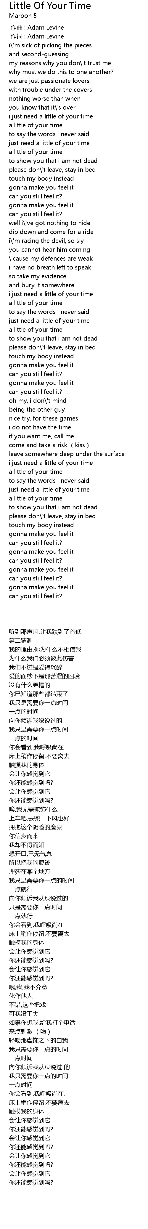 | [00:00.00] | 作曲 : Adam Levine |