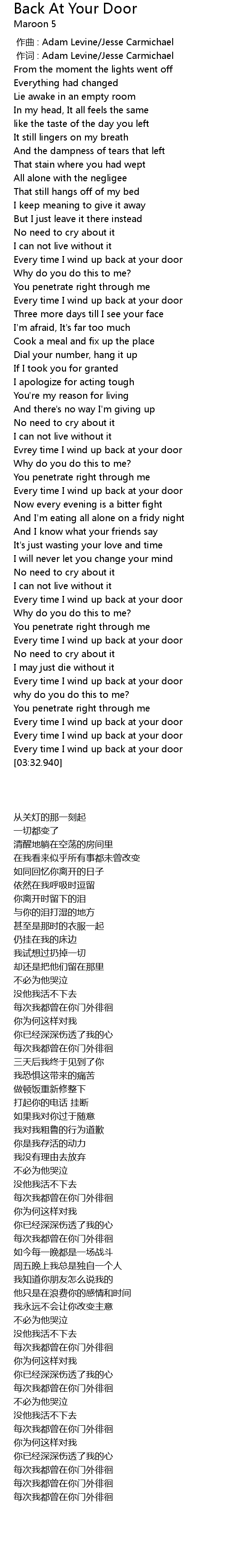 | [00:01.00] | 作词 : Adam Levine/Jesse Carmichael |