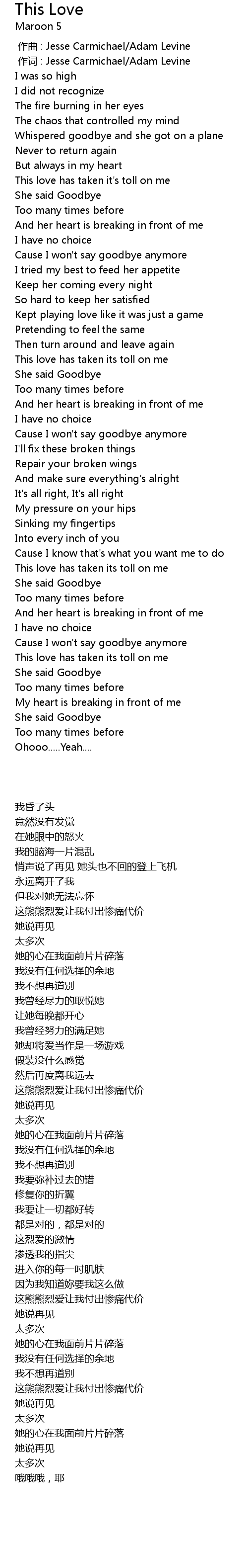 | [00:00.00] | 作曲 : Jesse Carmichael/Adam Levine |