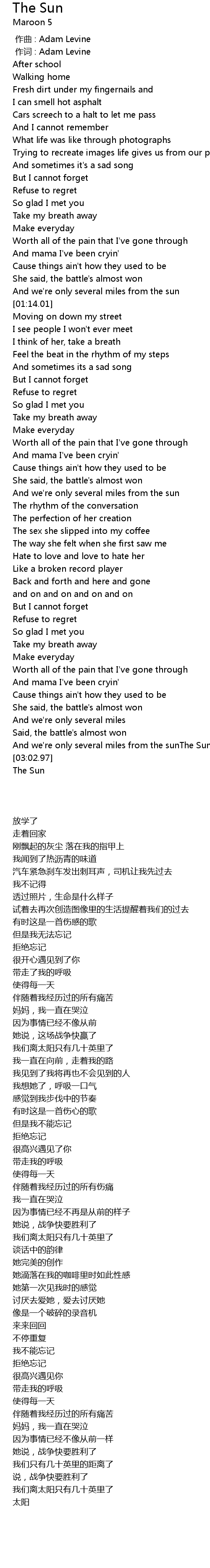 | [02:56.98] | And we're only several miles from the sunThe Sun |