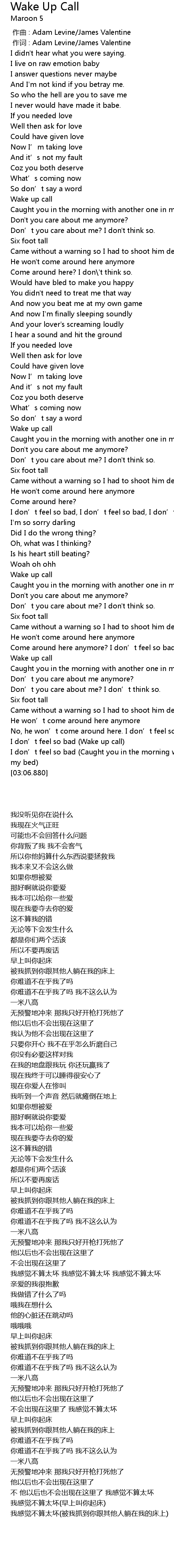 | [00:00.00] | 作曲 : Adam Levine/James Valentine |