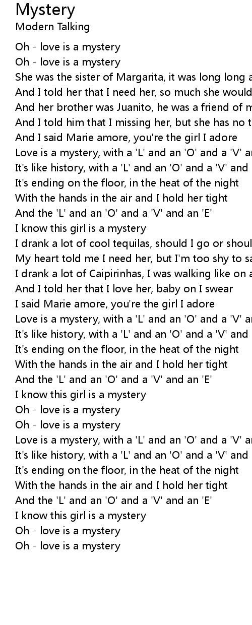 Love is a mystery, with a 'L' and an 'O' and a 'V' and an 'E' |