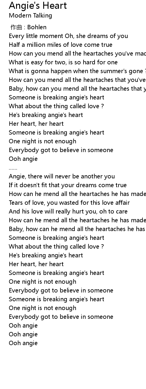| [02:35.43] | Someone is breaking angie' s heart |