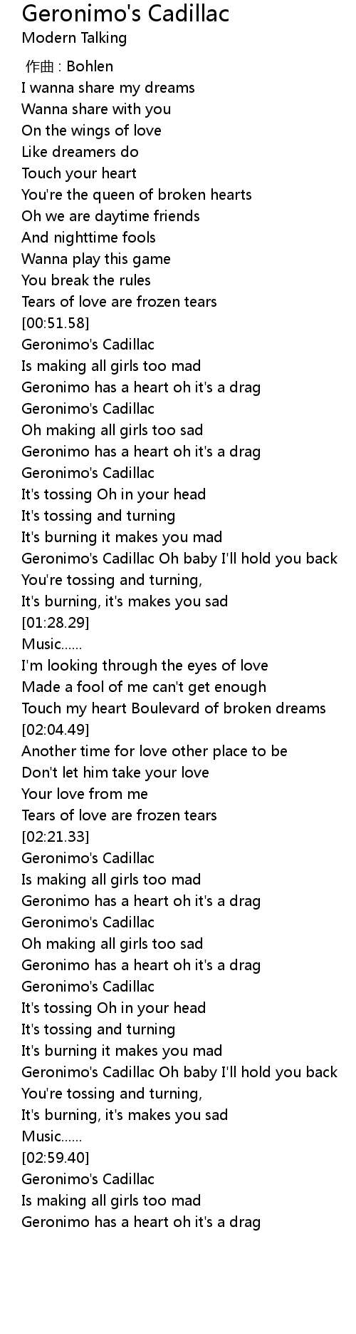 | [00:52.85] | Geronimo's Cadillac |