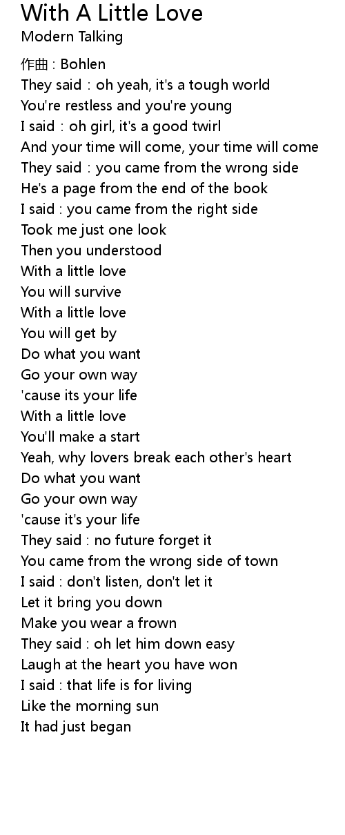 | Song | With A Little Love |