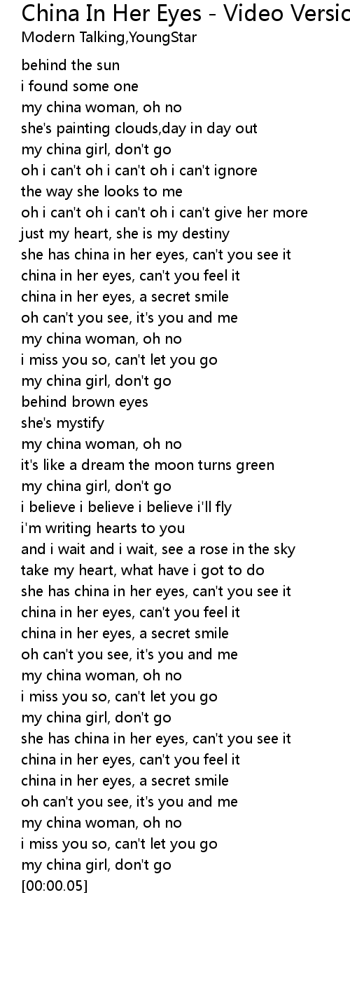 she has china in her eyes, can't you see it |