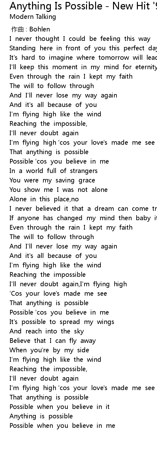 | [03:21.30] | Possible when you believe in me |