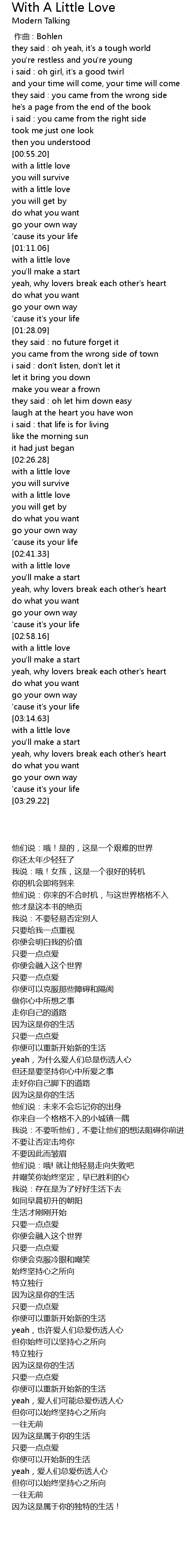 | [03:19.50] | yeah, why lovers break each other's heart |