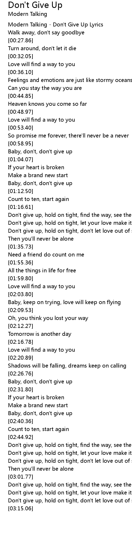 [00:01.45] Modern Talking - Don't Give Up Lyrics