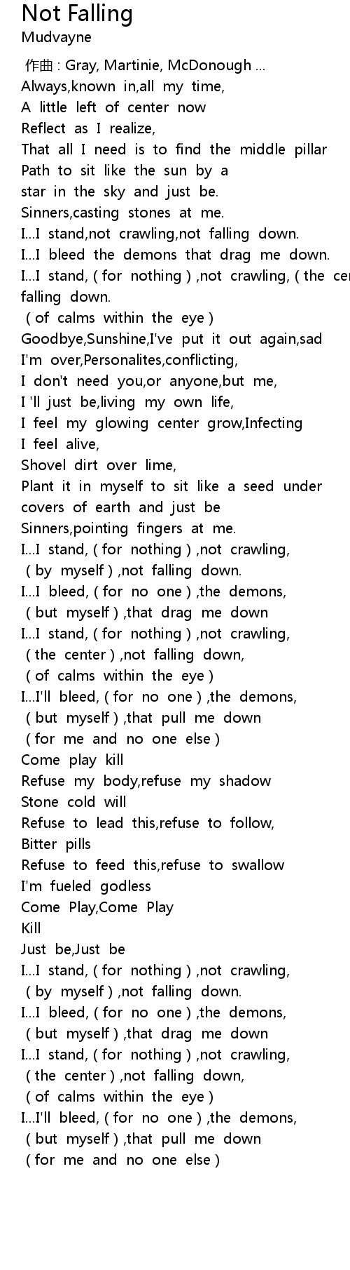 | [02:18.235] | (the center),not falling down, |