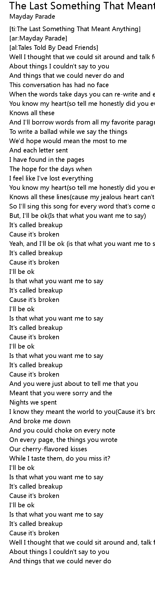 [ti:The Last Something That Meant Anything] |