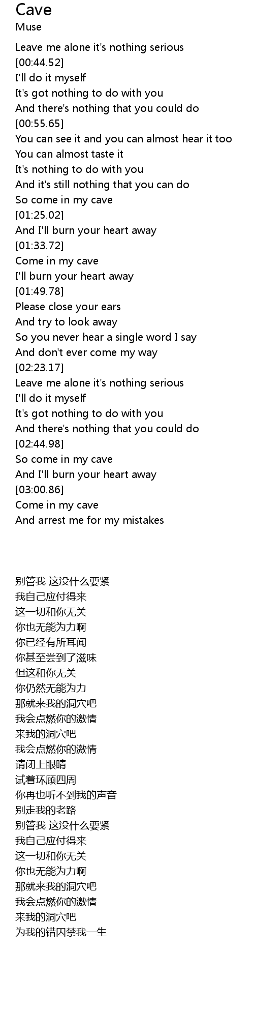 | [03:01.73] | Come in my cave |
