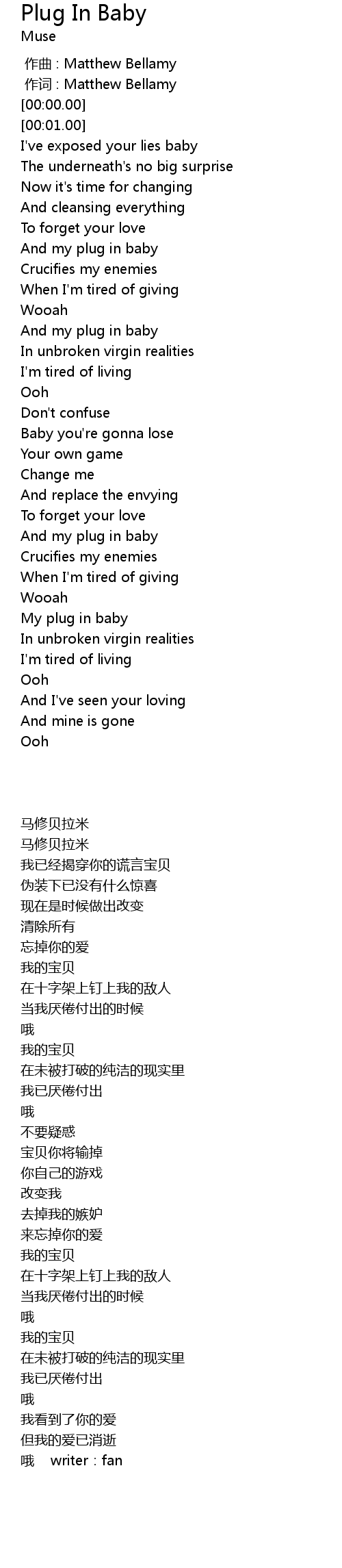 | [00:00.00] | zuo ci : Matthew Bellamy |