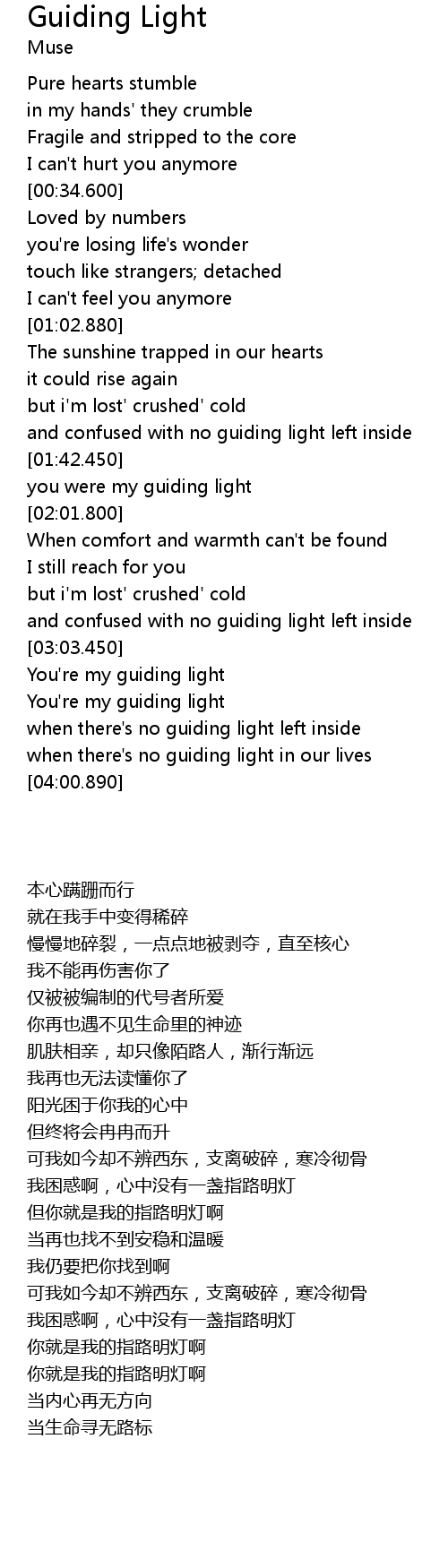 | [03:24.700] | You' re my guiding light |