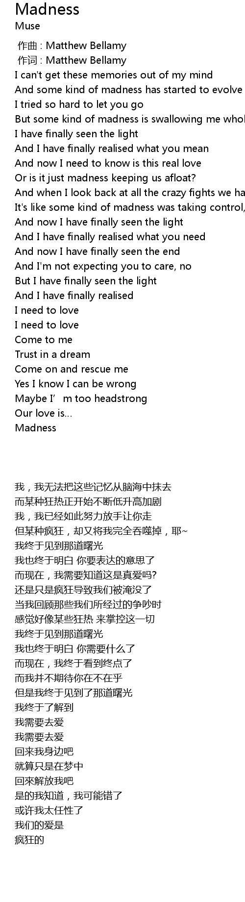 | [00:01.00] | 作词 : Matthew Bellamy |