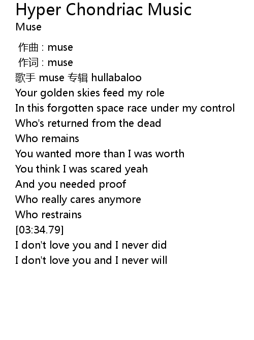 | [00:02.32] | gē shǒu muse zhuān jí hullabaloo |