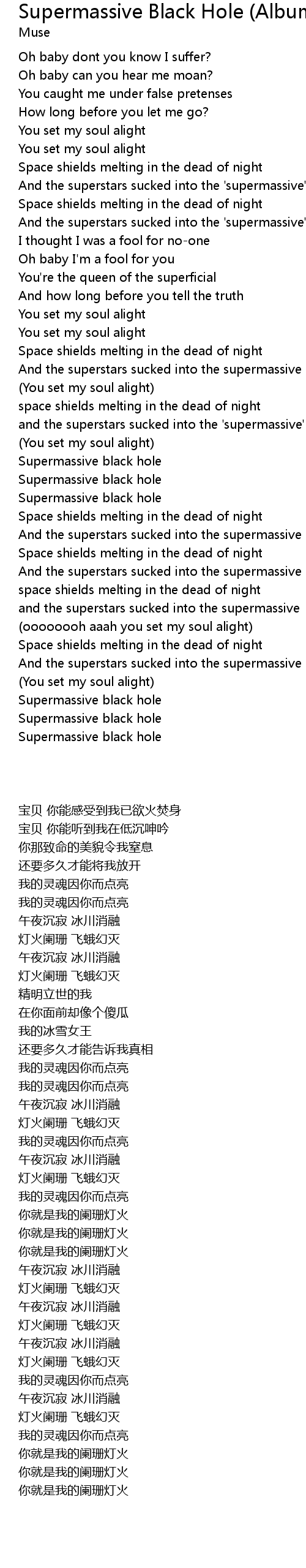 Oh baby dont you know I suffer? |