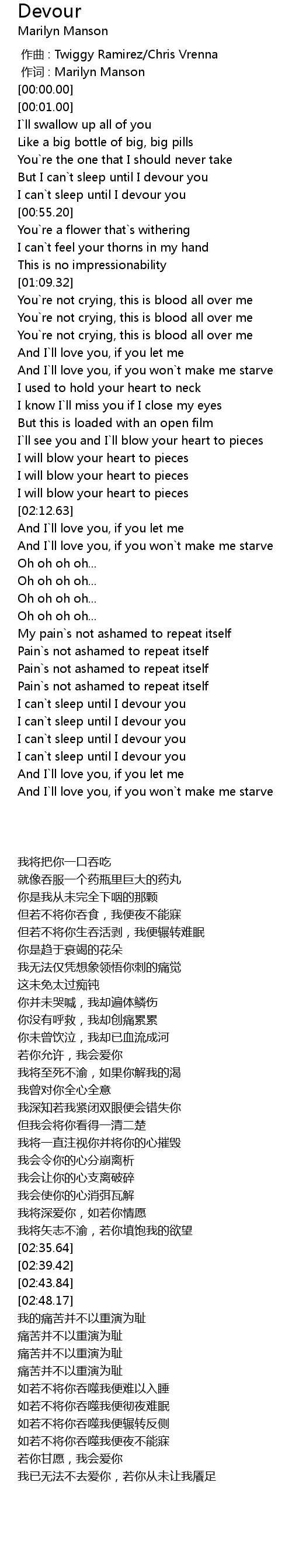 | [00:00.00] | 作词 : Marilyn Manson |