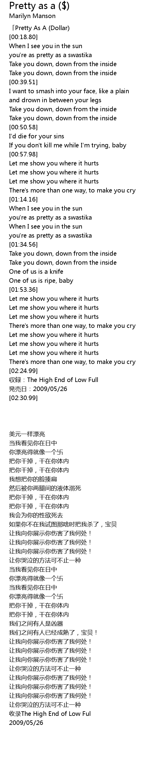 | [00:01.80]「Pretty As A (Dollar)] | 」 |