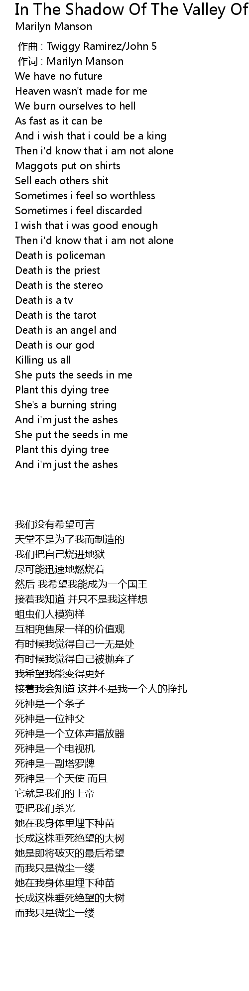 | [00:01.00] | 作词 : Marilyn Manson |