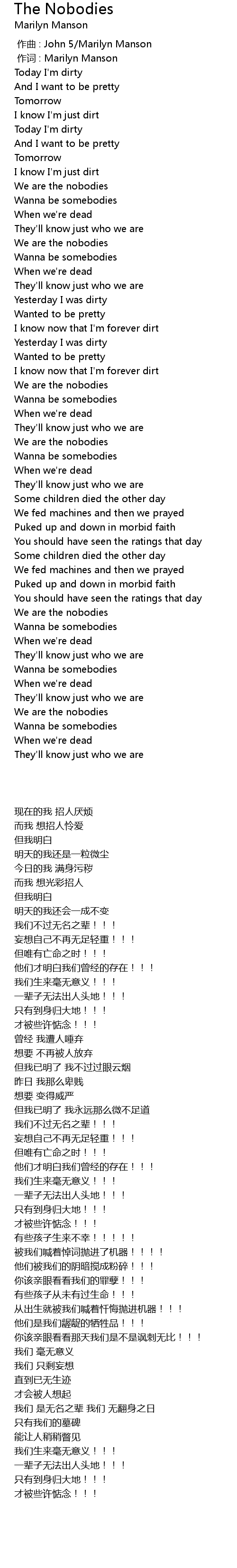 | [00:01.00] | zuò cí : Marilyn Manson |