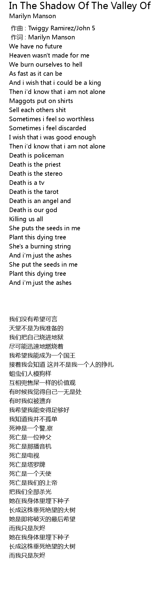 | [00:01.00] | zuò cí : Marilyn Manson |