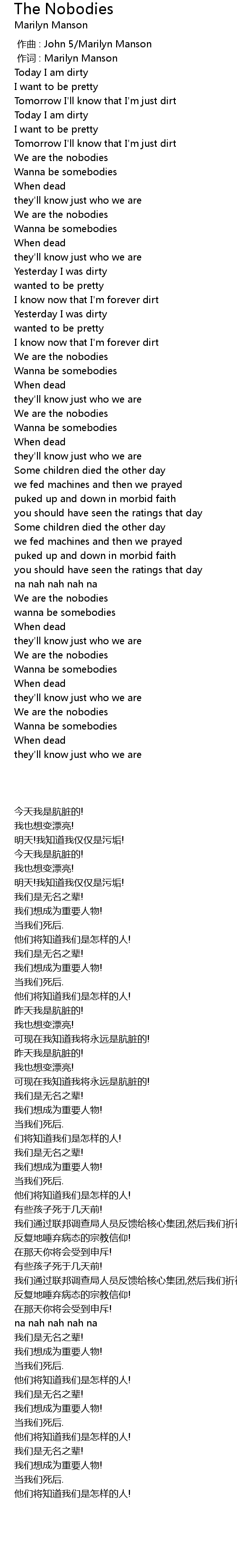 | [00:01.00] | 作词 : Marilyn Manson |