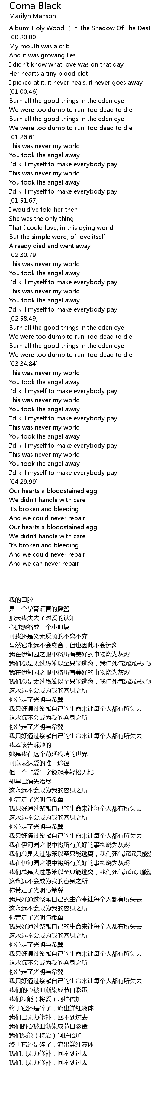 | [00:10.00] | Album: Holy Wood In The Shadow Of The Death |
