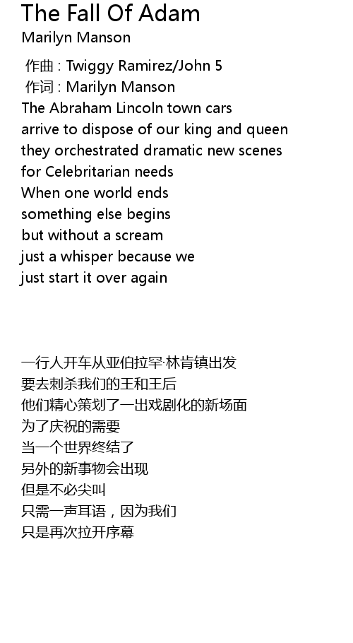 | [00:01.00] | zuo ci : Marilyn Manson |