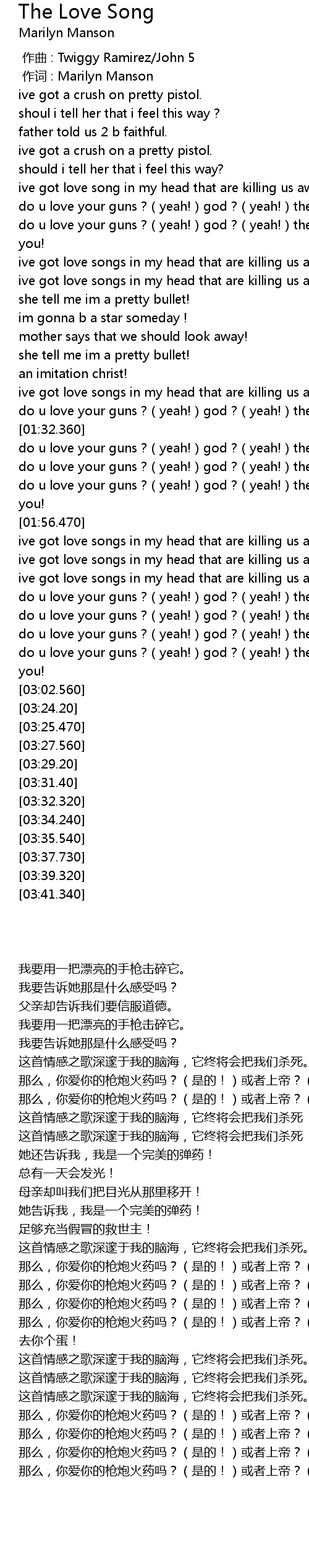 | [00:01.00] | 作词 : Marilyn Manson |