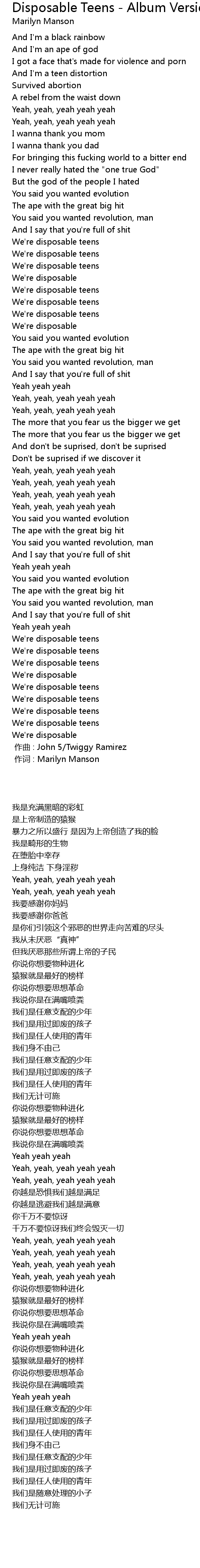 | [00:00.00] | 作词 : Marilyn Manson |