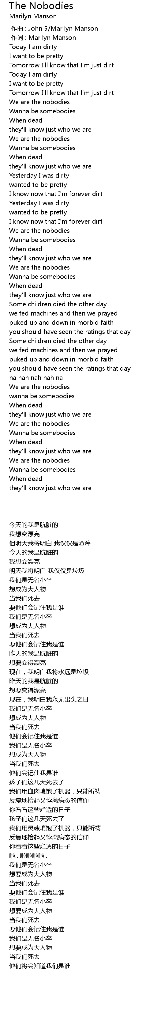 | [00:01.00] | zuò cí : Marilyn Manson |