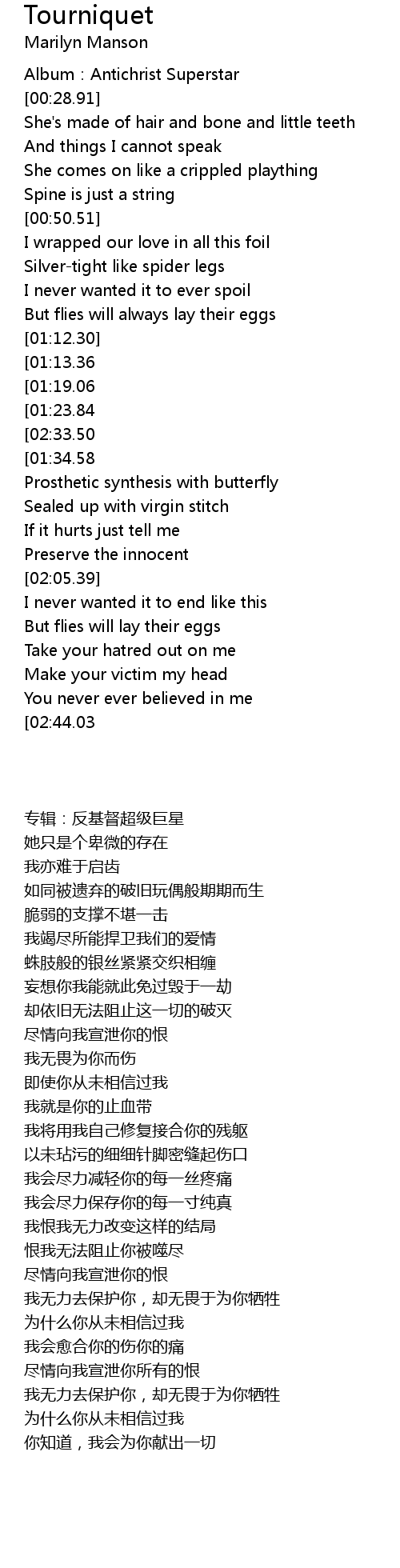 | [03:37.72][02:33.50][01:29.75] | I am you tourniquet |