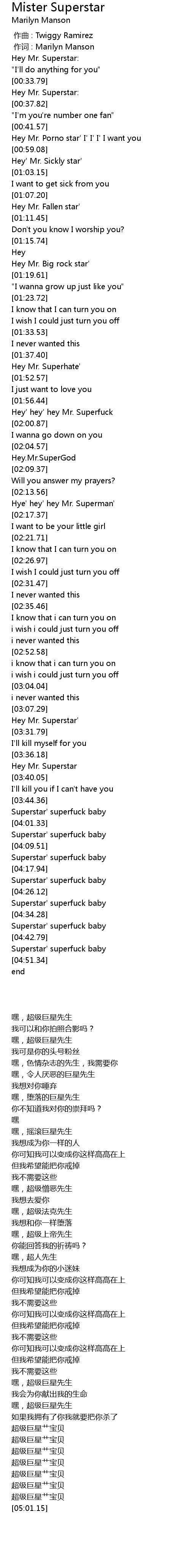 | [01:57.99] | Hey' hey' hey Mr. Superfuck |