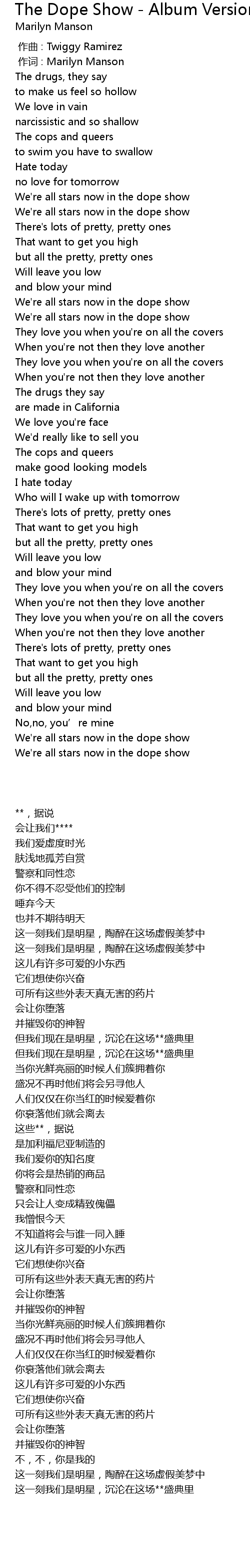 | [00:01.00] | 作词 : Marilyn Manson |