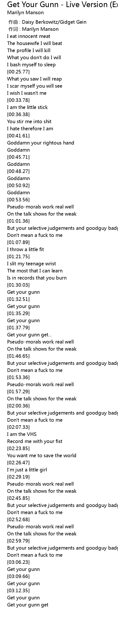 | [00:01.00] | zuò cí : Marilyn Manson |