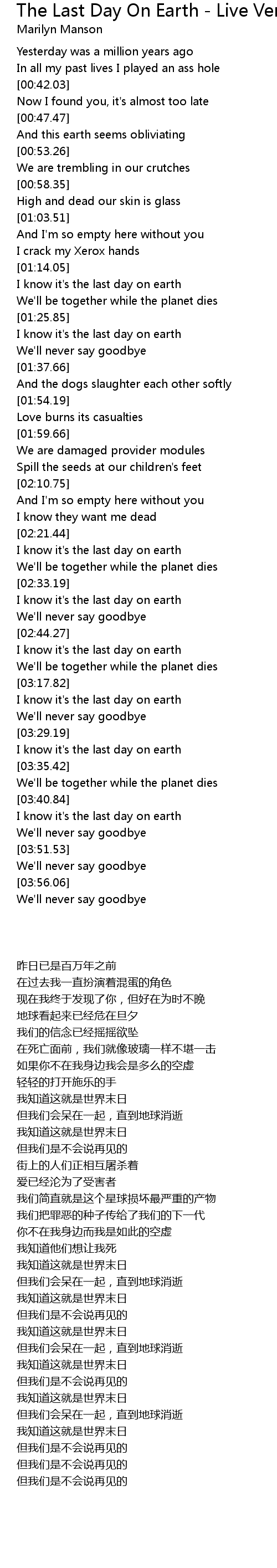I know it's the last day on earth |