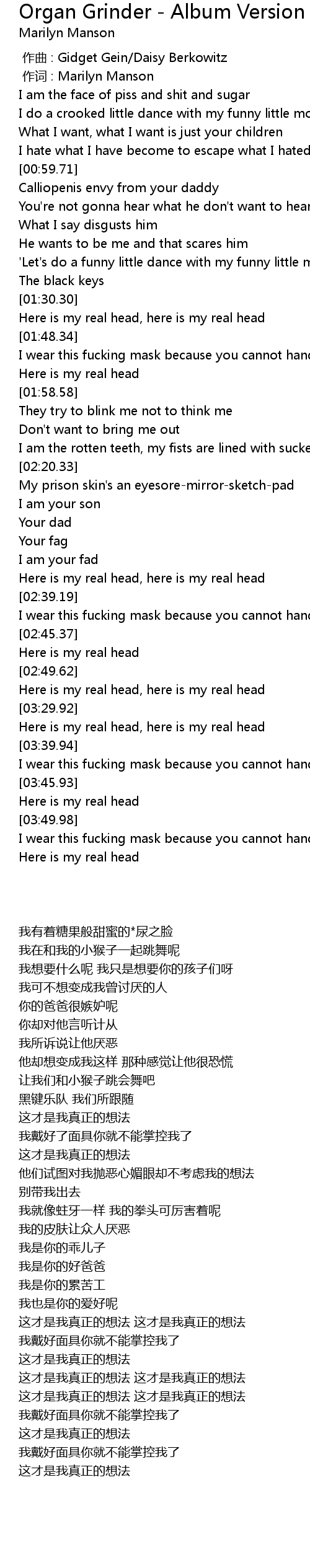 | [00:01.00] | 作词 : Marilyn Manson |
