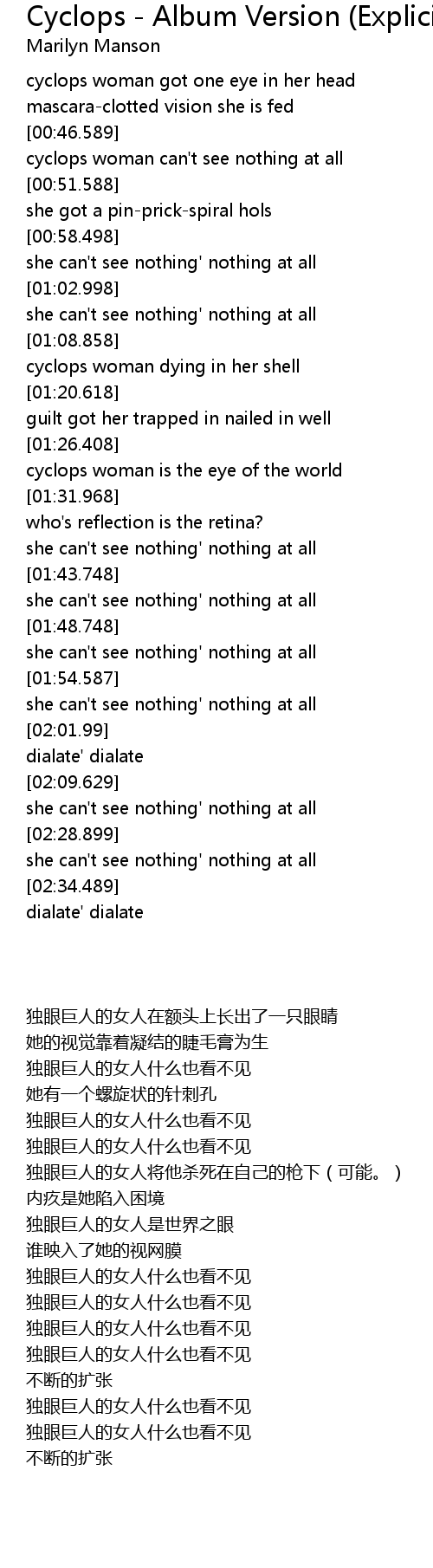 | [00:47.918] | cyclops woman can't see nothing at all |